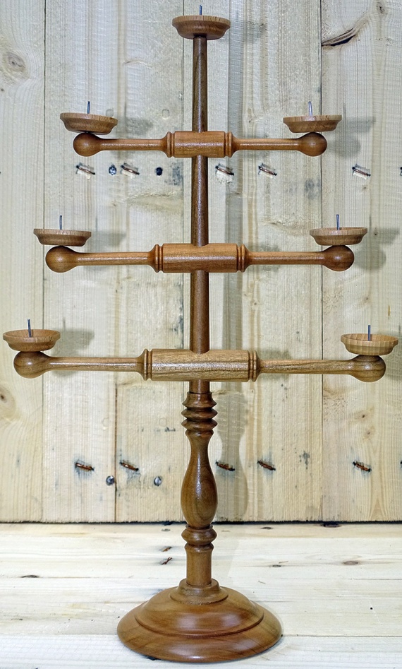Ausführung. Kirschbaumholz, lasiert, ca. 39 cm hoch, mit Holzschälchen.