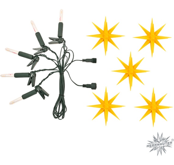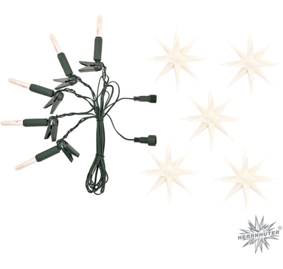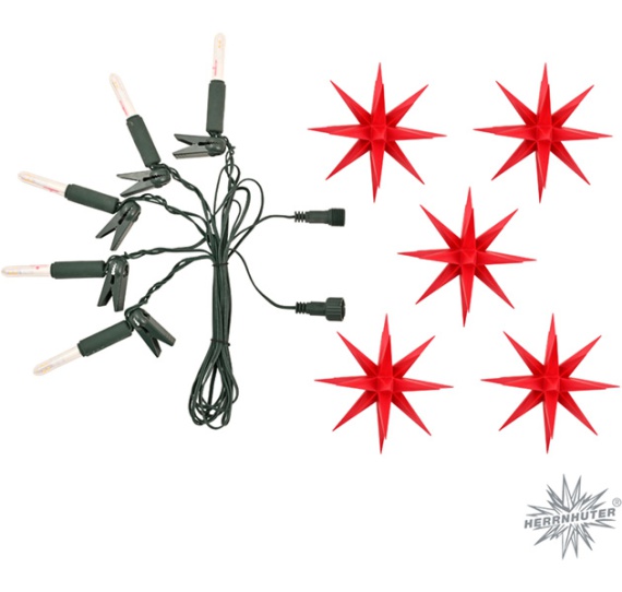 5 Kunststoffsterne, ca. 13 cm ø - zum Aufstecken auf mitgelieferte Lichterkette (230 V)