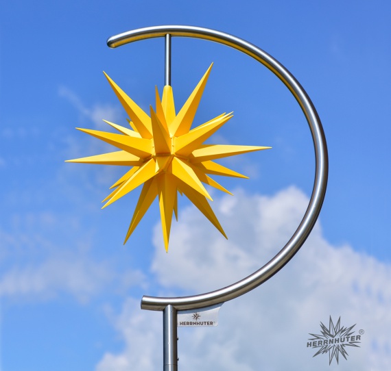 Die Leuchte kann ortsfest montiert (verschraubt) oder als mobile Version über Betonbodenplatten befestigt werden. Bodenplatten sind nicht im Lieferumfang enthalten. Der passende Herrnhuter Stern A7 ist im Lieferumfang enthalten. Am Bogen der Standleuchte befindet sich ein Zackenansatz, der die Farbe des Sterns vorgibt.